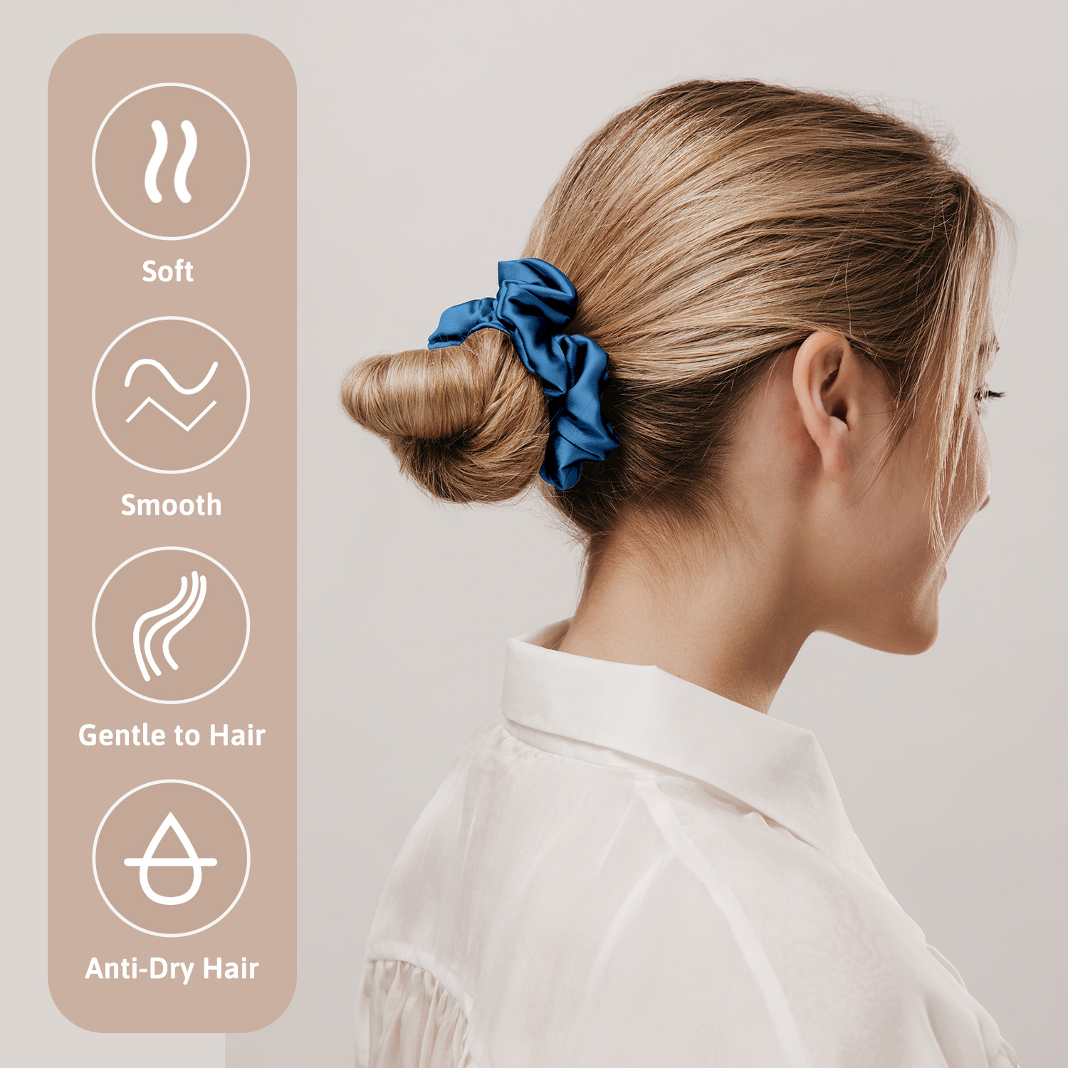 Atreebay silk scrunchies are made from 100% 6A Grade Mulberry Silk, super soft and smooth. Give you the softest touch feeling and make your hair healthy and energetic.