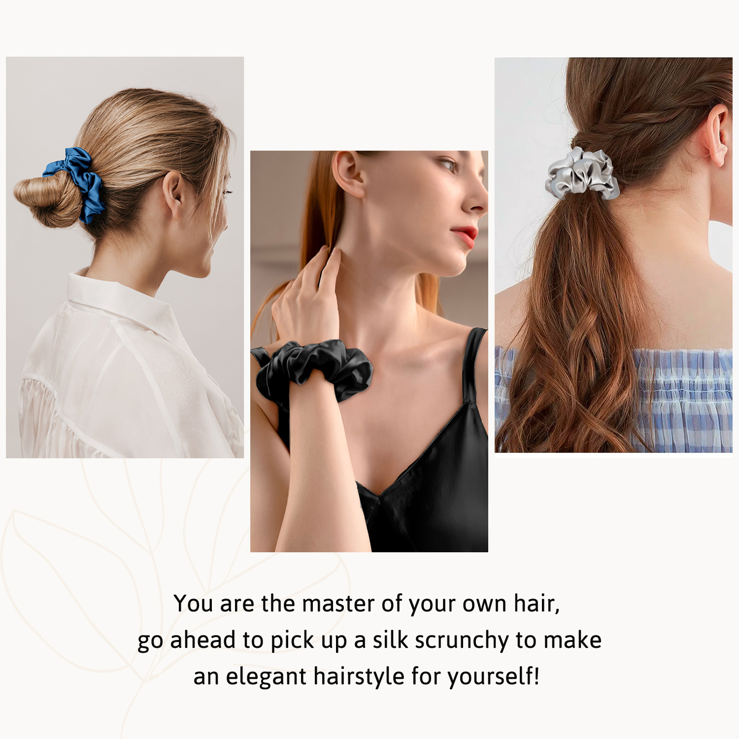 Silk is better for hair than other satin material or silk blend, it can keep your hair moist and protect hair from becoming knotted and matted. Each hair scrunch has a durable elastic band, soft and easy to wear, fix your hair firmly.